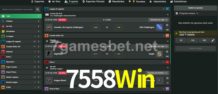 A aposta 7558Win oferece aos jogadores a experiência mais conveniente de apostas em eSports!